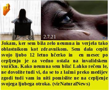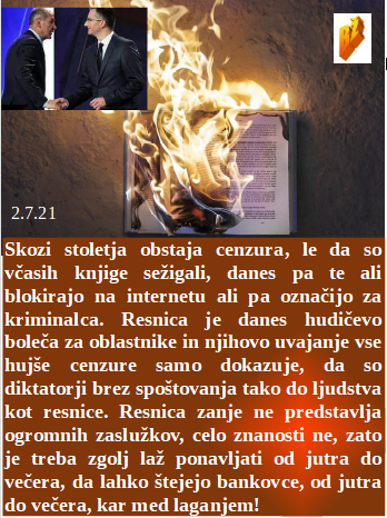 Na Gospodarskem razstavišču pa spet prestižna dobičkonosna razstava. Cenzura ne obstaja za laganje, vedno samo za resnico. Bila je tako neumna, da je 12 letnico peljala na cepljenje. Kabalska združba samooklicanih veljakov naj bi izbrala ustavnega sodnika. In šefica EU je odločno pristašica strankarskih fanatikov na sodnih mestih. In novi minister za strah ve, da jeseni otroci, ki jih ne bodo preko igel čipirali ne bodo več hodili v šolo!