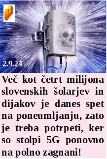 Vedno ko pridem v Slovenijo gledam samo škodo, ki smo jo naredili. In za šolarje so danes stolpi 5G na polno zagnani. Izrael protestira po smrti šestih talcev, ne pa po deset tisočih mrtvih Palestincev. Se je Gates napotil na zahodni Nil. Imajo devetošolci 3 možne dodatne predmete na izbiro. Da se niso Rusi mučili smo jim mostove raje mi porušili. In poplave tudi na Filipinih odnesle 14 žrtev.