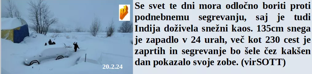 Na dan socialne pravičnosti si mnogo delijo celo hrano, oblast pa le zase. Izživljanje nad Rusijo je skoraj dnevno. Se Kitajska bori s podnebnim segrevanjem pri -53 stopinjah. Indija pa s snegom, v enem dnevu je zapadlo 135 cm.