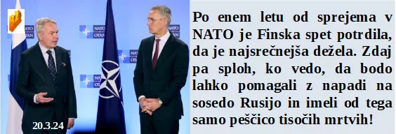 Bo država plačali vsaki občini zvočno vetrno elektrarno? Finci so najsrečnejši, so v NATO. Namesto predsedniške funkcije je bolje zalagati Ukrajino z orožjem. In danes je bil spet vojaški podnebni zločinski dan. Za Mehiko je problem GSO koruza škropljena z RoundUp.