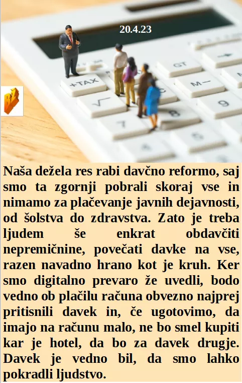 Smo od EU dobili 50 milijonov za nadaljnje digitalno uničenje družbe. In za kaj se bodo štempljali politiki, če nič ne delajo? Politični inštituti so črvi za proračun. Vse o novi elektriki je laž, kot je zgodovina ne pozna. Davki poberejo ljudem vse, torej rabimo nove davke!