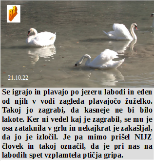 Se labodu zakašlja, ko pogoltne žuželko v vodi in že je javno razglašena ptičja gripa! Kdo ve, če mediji sploh vedo še za kaj razen za ukazano objavljanje? Je morala zapustiti sejo DZ, ker ne prenaša levega fašizma, samo desnega. Sudan pa pod vodo in žrtev milijon!