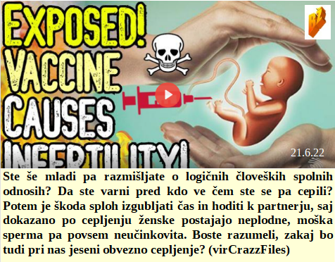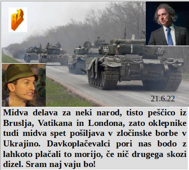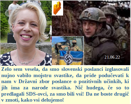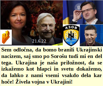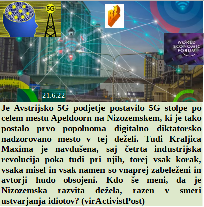 Sva oba na strani elitnega naroda in zato spet pošiljava tanke. Cepljene ženske postajajo neplodne, moški pa brez sperme. Ubogam svojega šefa in zato vztrajam, da branimo Ukrajino. Apeldoorn na Nizozemskem je postal prvo povsem 5G mesto na Nizozemskem, vse je pod kontrolo. So slovenski poslanci ponosno izglasovali, da mora priti Zelensky na obisk, ampak s svastiko.