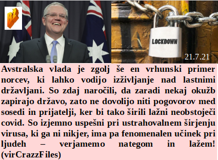Nove okužbe si je treba izmisliti, saj je 5G že nekaj časa na razpolago. V ZDA pa Biden vadi na novem vojnem polju. Da ne bo napak pri razmišljanju, oboji so za smrtonosni drugi atomski blok v Krškem. Avstralska oblast pa se prednostno izživlja in za toliko lažnih okužb kot zdaj pri nas zapira milijonska področja. Mediji nategnejo ljudstvo, to se naivno cepi in rezultati so načrtovani!