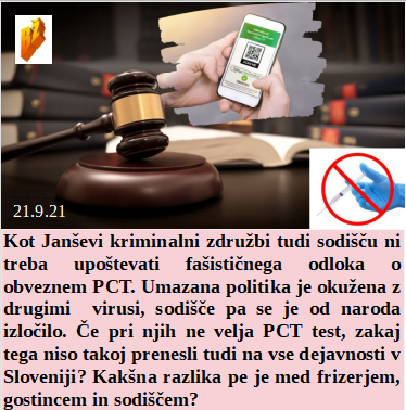 Anhovo je že leta žrtev umazanega kapitala in politike, rakava obolenja so tam vsakdanji pojav. Italija začenja obvezno fašistično cepljenje. Če za Janšo ne velja PCT zakaj bi potem tudi za sodišče? Biden pa že odločno nad povprečne Američane in preverja vsako njihovo plačilo nad 600$, torej vse nad slovensko nenormalno visoko pokojnino. Dobro so poneumili naše zdravnike, najvišjo izobrazbo bodo imeli na kovid!