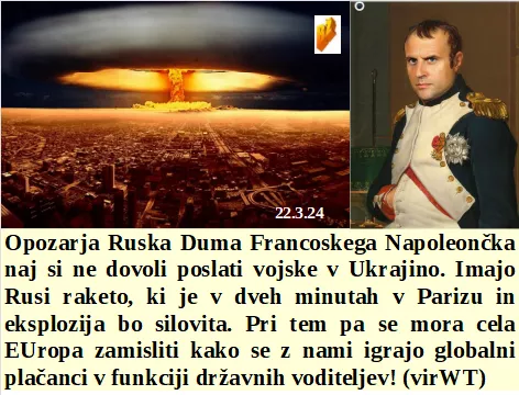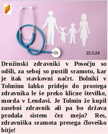 Družinskih zdravnikov v Posočju ni več. Se slon nasilnemu turističnemu avtobusu ni hotel umakniti. Tudi Fajonova je za to, da se Ruski pokradeni denar porabi za vojno. So Francoskega novega Napoleončka temeljito opozorili!