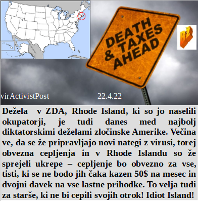 Samo pametno moramo delati z davki in napolnili bomo našo državno neljudsko blagajno. Konec je širjenja resnice pred volitvami, zdaj je le še drek na cesti, ki nikomur ne pripada. Če ne bi bilo zločinskih tehnoloških naprav potem tudi takih 80 letnih poplav v Uzbekistanu ne bi bilo. Kapitalizem je za bogate, socializem za revne. Rhode Island uvaja nacistično cepljenje!