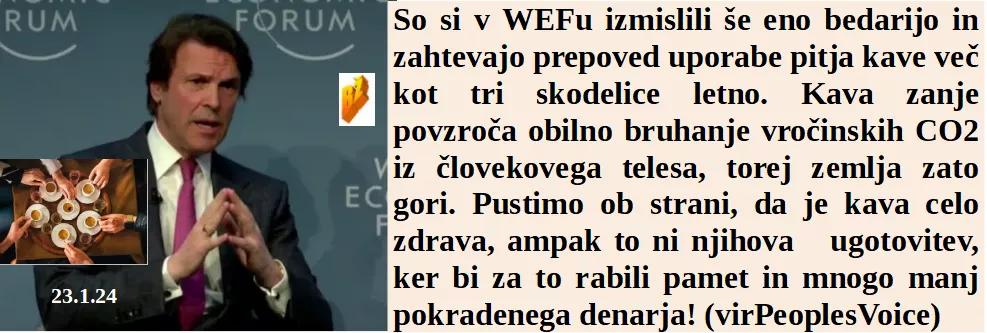 Ker nobeden nič ne razume rabimo vše tretjega podpredsednika. So kanalizacijo brskali po bančnih županovih zabojčkih? In WEF zahteva največ tri kave na leto! Nič nenavadnega, če si pri zdravniku naročen leta 2034. Zdaj so zelo jezni tudi Francoski kmetje.