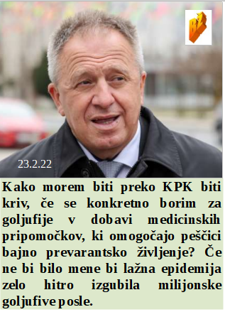 Smo dolgo mislili, da bomo druga Švica, pa smo danes prva koruptivna Švica. Medicinski pripomočki so v dobi nategovanj odlični zaslužki. Ne dovolite, da vam kradejo vaše misli, sicer je konec tudi z vašo svobodo!