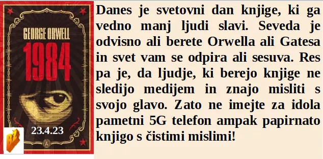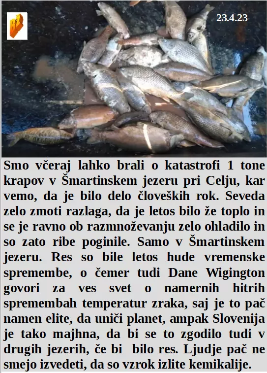 Tona rib je poginila v jezeru, pa se nihče ne vpraša zakaj lažejo? Odpoklicali so sodobne tovornjake, da ne zgorijo prej kot v enem tednu. Naj bo Biden politika ali družina, vedno je vse umnazano. Kako povsem nasprotno, ko na dan knjige berete Orwella ali Gatesa.