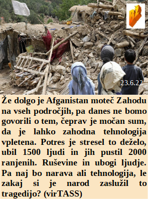 Gremo v Rusijo, da se naučimo kako bomo pljuvali čeznje. Kako neverjetno - vse kar se dotika Rusije je zeleno, vse kar je pod nadzorom Zahoda pa rdeče. Žalostno kakšen potres je danes stresel Afganistan. Dobili bomo digitalne otroke, torej izgubili seks in ljubezen. Če hočem biti predsednica potem moram hudičevo zagovarjati smrtonosno cepljenje!