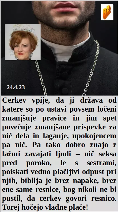 Ko se na pol zlaže Janez nato pa na pol še Robert je laž popolna. Rusija z reševanjem Ukrajine povzročila Zahodu ogromno škode. Država Cerkvi povzroča težave, celo prispevke iz žepov državljanov jim zvišuje. Danci so med najbolj razvitimi, so očku, ki doji, postavili spomenik. 1200 otrok umre vsako leto, le pravega razloga oblast ne pove.