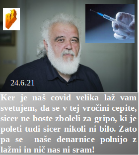 Znanost in denar pred resnim raziskovanjem. Pokojnin ne nižamo, saj cepimo stare. Hude nagrade za cepljene, če hočemo doseči 100%. Tudi naši vojaki v tujih vojnih misijah po svetu. Cepite se, ker je prevroče, sicer gripe ne bo. Maske so del elitne zabave, kjerkoli si že, a nisi politik. Z recepti do slabe kuhinje. Ko obstaja TV, ki še danes ne ve kaj je bilo 1945!