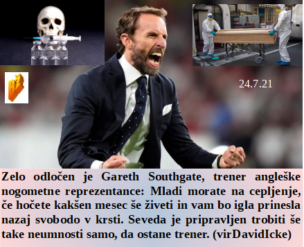 Cepljenje in 5G sta zgolj vrhunec Agende21 in vsi, ki delajo na tem so le uslužbenci zločinske elite. Njihov uslužbenec pa je tudi trener Angleške nogometne reprezentance. Danes pred leti je bil v Hollywoodu posnet film o pristanku na luni. Polovica EUropejcev pretirava s hrano in je zato raje na 5G kot na zdravem in rekreativnem življenju.