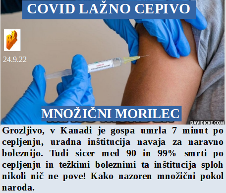 V Kanadi je gospa umrla 7 minut po cepljenju. Pri nas pa ljudje sploh ne dojemajo kako škodljive so maske. So na OZN razpravljali kako jim uspeva lakota. Celo Hrvatje so na protestu pozivali svoje lopove, da izginejo. Mi je nova vlada zelo pomagala, da se mi je plača dvignila celo na 697€. Direktor RTV Slo ni proti stavki, saj si bo vsak dan stavke vzel dnevno plačo od vsakega stavkajočega.
