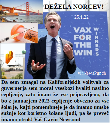 Ker mnogo držav ukinja ukrepe proti lažnemu kovidu je višek nategovalne opreme že namenjen v Slovenijo. Razočaranje je bilo veliko, nismo še prvi na seznamu korupcije. Predpogoj za zmago v Kaliforniji je biti cepilni norec. 2 funta na dan je kazen za vožnjo s starim avtom v Londonu!