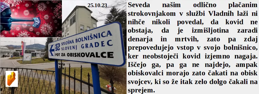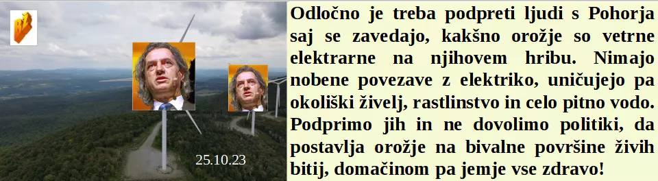 So nam dan suverenosti že pred 30 leti vzeli. Za naše zasežene milijarde organi pregona zelo lepo delajo z nami. Podpreti je treba odločno ljudi s Pohorja zaradi uničivelanih vetrnih elektrarn. V bolnico omejen vstop, ker razsaja neobstoječ virus. Vpij name, sicer bodo ljudje mislili, da nič ne delamo zanje.