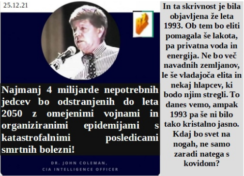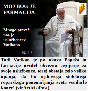 Morate vedeti, da bo do leta 2050 4 milijarde manj jedcev na tem planetu, najkasneje. Uvedel sem obvezno cepljenje, kajti tudi v Vatikanu nas je preveč. Razsaja omikron, sobe v bolnišnicah pa so prazne. Že leta 1992 v Barceloni so vedeli kakšna laž bo širjena v letu 2021! Hočem novo letalsko družbo za odvoz cepljenih.
