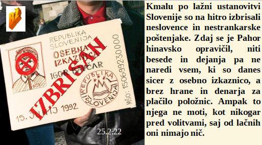 Koliko je danes izbrisanih iz normalnega življenja, pa to oblastnikov ne moti in se niso pripravljeni opravičiti. Je Schwabb ugotovil, da severni medved ne rabi ogrevanja, zato je raje Ukrajino zakuril z Rusijo. Nikakor človek ne sme preblizu svobodi, bodo lastniki tega izmišljenega stanja takoj spisali nove ustreznejše zakone!