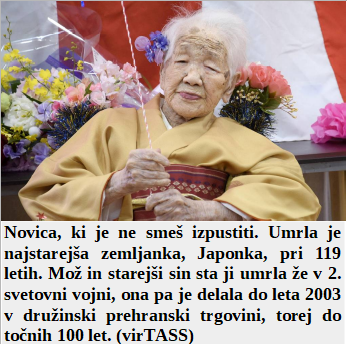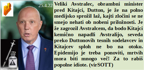 Dva gospodarja dva hlapca dva ostrižena naroda! Je lipa kot simbol padla na golobe, ki so opravljali svoje delo na papirnatih napovedih. Avstralski obrambni minister je že dobil plačano napovedovanje novih laži o novih epidemijah! Gospej pa vsa slava, saj doživeti 119, še posebej danes, presega vse napovedi o možnem človekovem življenju.