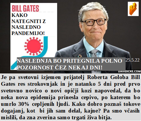 Od danes so koze in opice enakovredni državljani vsem Slovencem. Je med njimi tudi najbolj požrešen, ta bo šef. Pred 61 leti smo se veselili in nikjer poslušali o grozotah, ki naj bi nas čakale! Jaz sem mojster, tudi z naslednjo epidemijo vas bom vse nategnil. Ukrajina je cesarica za GSO prehrano. Kakšne duševne motnje po Sloveniji, ampak nič zakaj!