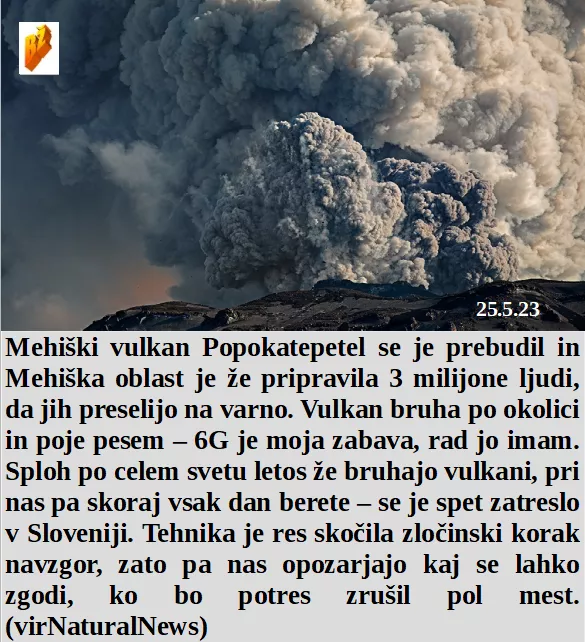 Družili smo se, brez pametnih telefonov in brez sovraštva. Tudi v Rusiji nenadoma umirajo pomembni. Je Ameriška kuna po obisku Slovenije ugotovila, da smo grobi do njene RTV. Mehiški Popokatepetel se je zbudil in 3 milijone ljudi že beži pred 6G! Umetna pomlad letos je bila polna mraza in poplav, proti hrani!