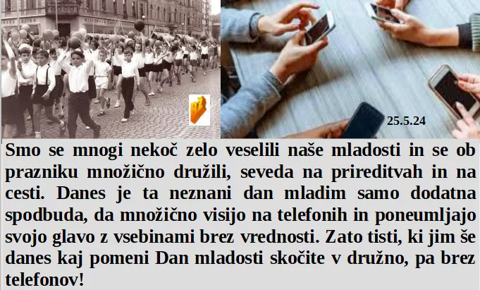 So trepetali da vendarle podpišejo, pa se je zataknilo za eno leto! Nekoč se je mladina veselila na prostem, danes za mizo z očmi v ekranu! Ni nobene razlike med njima, samo vsak na svoji lokaciji. Duhovitost je nujna, če odpira srca!