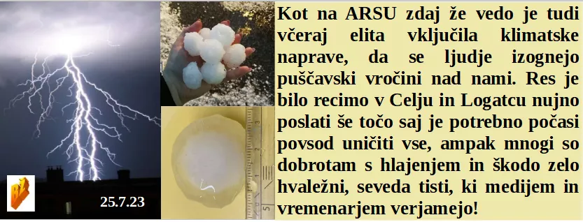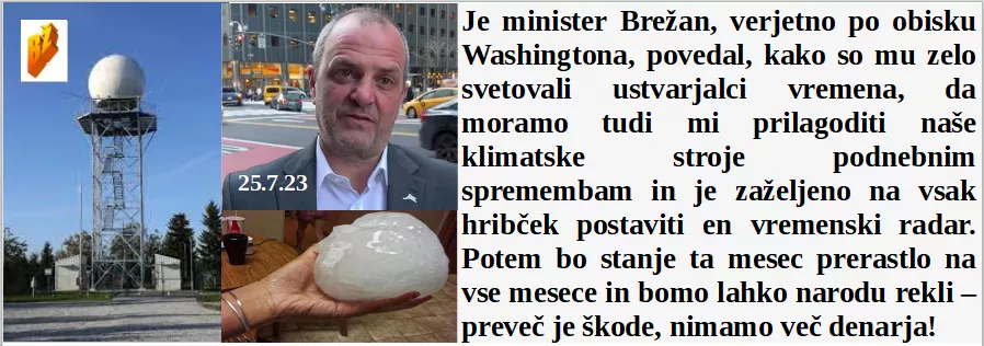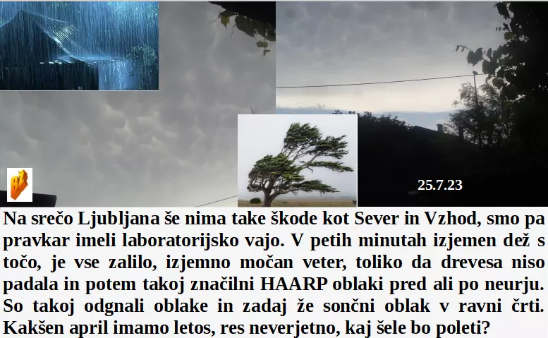 Zdaj je pa kruto igranje z vremenom že skoraj vsak dan poletja. Če vidite na hrani žabo potem izdelek ni nič vreden. Denar in vpliv nad ljudmi, to je želja lastnikov RTV. Kako prijetno je igrati laboratorijske vaje tistim, ki jih lahko. Rabimo več strojev za boljše ustvarjanje klimatskih težav. In Čepovan je bila ena izmed velikih žrtvenih vasi!