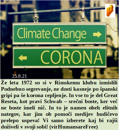 V bolnicah imamo samo necepljene bolnike, ker necepljenih sploh ne sprejemamo. Tudi naši šolniki dobivajo grožnje z odpovedmi, zato mnogi pristanejo celo na opravičila za povedano resnico. Bodo kmetje morali podpirati zasebne investicije brez kmetijskih razlogov? Schwab dobro ve, da so že leta 1972 na zasebnem srečanju dogovorili podnebni nateg.
