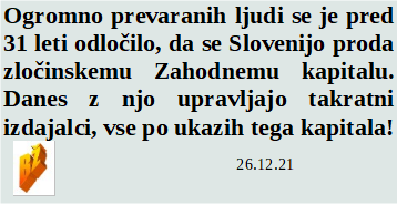 Slovenski in svetovni politični hlev na dan 26.12.21