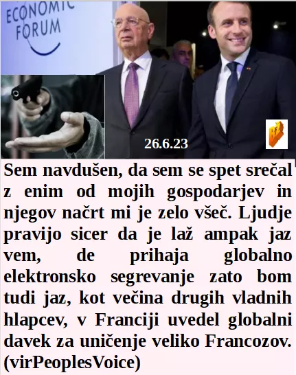 In kolikokrat bo zdravstvenim lutkam še uspela gledališka predstava do leta 2030? Poleg EU vojaške vaje na Kosovu so imeli še vojaško vremensko vajo z mrtvimi. A sva smešna, vsak dan govorijo samo o najinih bedarijah! Moj preljubi stric, tudi jaz bom v Franciji uvedel davek na podnebno laž!