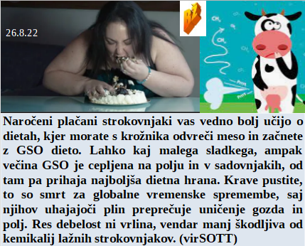Bo tudi Nemško javno TV moral prevzeti Urbanija ali pa jo bomo ukinili kot Nemci? Postajajo GSO diete vedno priljubljenejše med ovcami. 50 let ima zločinov za seboj vsak dan, kaj bo svet naredil? Toliko zapraševanja kot letos že dolgo ni bilo, se ve zakaj! Tudi preko poljedeljstva bodo Evropo načrtno uničili!