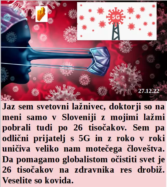 Doktorji zaslužimo tudi po 26 tisočakov in smo zaljubljeni v povezana kovid in 5G. Naša inflacija nas ne bo uničila, ker smo zvišali do koliko se lahko javno nažiramo. Kovida ni, UKC Maribor pa na veliko z njim v reklamah. Imam rada talibane, me tudi čuvajo!