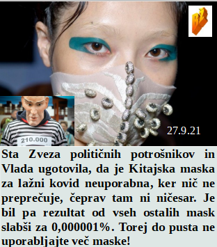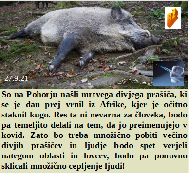 Že leta se število mrtvih zmanjšuje in tudi kovid nič ne pomaga, le še cepljenje. Je Kitajska maska neuporabna kot vse ostale, le pustna Janezova je v redu. Da bo vlada lahko veseljačila morajo tudi občine dati več. Je divji prašič po vrnitvi s potovanja po Afriki zbolel na Pohorju. Avstralci pa dobijo spremembe le, če se vsi nasilno cepijo.