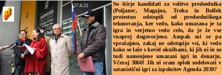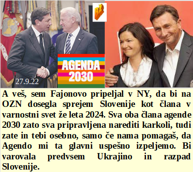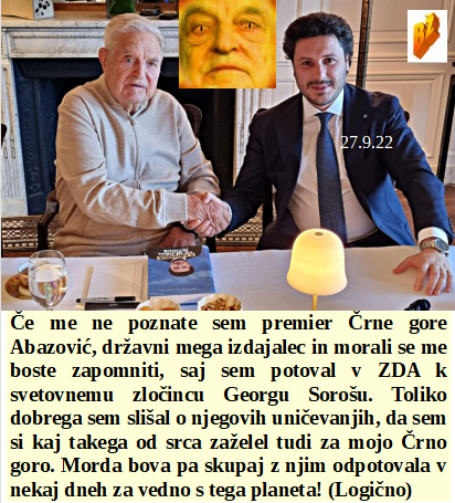 Kot šef črnogorske vlade se pa ja lahko srečujem s Sorošem, bo pač delal vse namesto mene. Sta Pahor in Fajonova letela v New York na zasedanje Agenda 2030. So se štirje kandidati zavedeli, da so tam le kot orodje za igračkanje z ljudstvom. Je Ardernova zahtevala popolno cenzuro o vseh kovid zločinih. Tudi Vajglu so šefi globoke države povedali, da na volitvah nima kaj iskati!