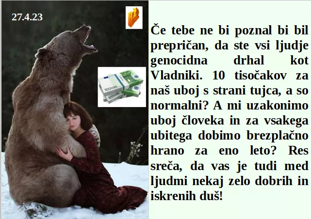 Oni so se ponosno vračali domov po zmagi, danes pa vsi politiki sledijo poražencem. Svobodni smo, ko v človeku prepoznamo človeka. Zbor za osvoboditev Slovenije je pokazal veliko razočaranje. Za velike zasebne denarje razglasili poboj medvedov!
