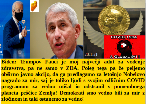 Če še ne veste potem je čas za ozaveščenje - zdravstvo že dolgo temelji na denarju. Zapreti državo z maskami pomeni milijone na računih peščice. Kot vsaka igla za lažno epidemijo pobira še zadnje svetovne dragulje. In ZDA po ukazu NWO predlagajo največjega zločinca zadnjih desetletij Faucija za nagrado vojaškega zločinca Nobela!