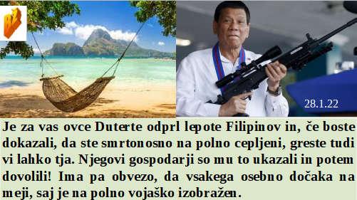 Pokojnina ni za reveže in garače. Varujejo vaše osebne podatke tisti, ki jih lahko zlorabljajo. Duterte vas z orožjem čaka pred vhodom na Filipine, da pokažete prejeto smrtonosno cepivo. Je test za Peking pokazal Wuhan Janšo. In včasih moteči kamioni na cestah danes kažejo pot do svobode!