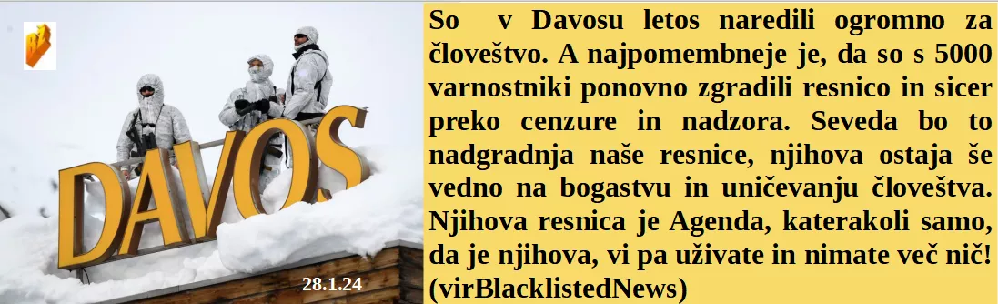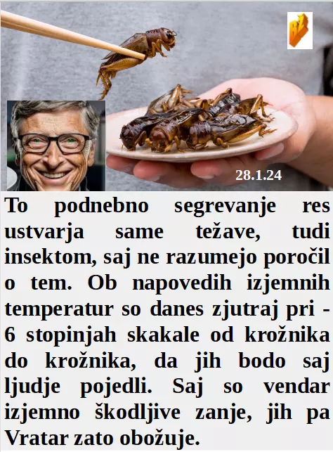 Je 5000 varnostnikov pomagalo v Davosu zapeči cenzuro! Učitelji v ZDA morajo učence naučiti ljubiti cepljenje. In temperature se dvigajo torej prehranske žuželke naraščajo. Tudi v Ukrajini samo majhne podkupnine razkrijejo, kot pri nas.