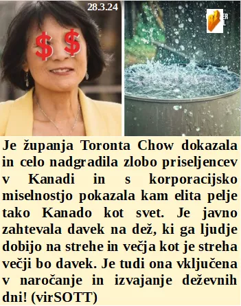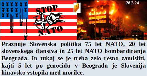 Zapori so sicer polni a najhujših kriminalcev tam ni. Ob praznovanju NATO okupatorjev so naši pozabili na Beograd. In Kanada hoče davek na dež, ki ga sami ustvarjajo. Je naša vodilna ekipa navdušena nad NATOm.