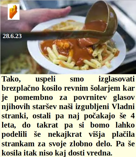 Mora sinu razlagati o čem mediji toliko lažejo! Je jezen zmagovalec ženske dirke, saj je moških v tej kategoriji premalo. Potrjeno brezplačno kosilo za šolarje nekoč, bo pa poceni. Pri nas bo z žitom težava, prihaja Ukrajinsko umetno in zelo poceni!