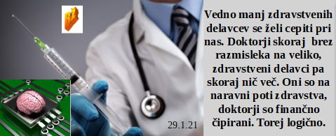 Ko si enkrat v politiki je korupcija eden najlepših in najdonosnejših poslov. Enako žalostno je več kot 90 let stara resnica, da bežimo od vseh, ki nam solijo pamet kaj delati, kaj jesti in s čim se cepiti! Cepiv je premalo zato je epidemija še vedno tu. Če cepiv sploh ne bi bilo tudi epidemije ne bi bilo. Tudi med zdravstvenim osebjem je vedno manj tistih, ki želijo smrtonosno cepivo, so pa višji zdravniki že čipirani in tega odklona ne sprejmejo!