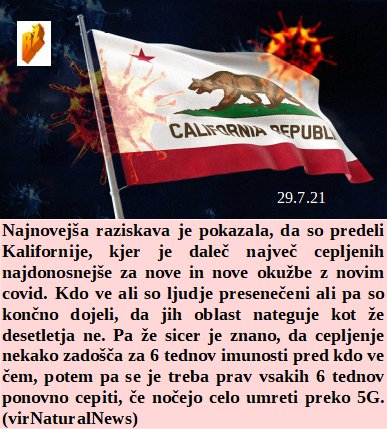 In samo človeška rasa razmišlja o covid nategu, živali so očitno prepametne. Jesen bo huda, saj po cepljenju naprave 5G in strupi v cepivih naredijo svoje. In v Kaliforniji skoraj vsak cepljeni ponovno zboli. Seveda doba, ko je mrtvih več kot novorojenih nima čisto nič z naravo. Cepiti moramo vsaj dve tretjini, da bomo na vladi imeli mir pred glasnimi.