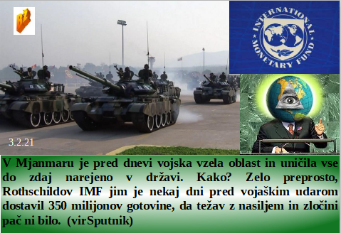 So Rothschildi natiskali kar nekaj brezplačnega denarja za vojsko v Mjanmaru. V Španiji pa so v Domu za ostarele cepili, da je spet priskakljal virus. Pri nas še pred tem ponarejajo številke, da je videti grozno. In z Janezom se opozicijski prevaranti tako radi pogovarjajo. Se bosta še dva na papirju nasprotujoča ujela z laganjem narodu? On bo pa do konca življenja na kolenih, da le ostane predsednik.