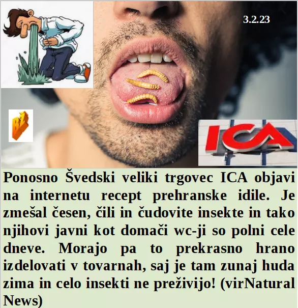 Poškropljene žuželke na poljih bodo pa ja vrhunska hrana za vse nič razmišljujoče! Farmacevtski izdelki so pa ja vrhunski saj v kratkem času naredijo bolnika odvisnega. In kaj reči, ko sredi poletja dobiš veliko pošiljko snega, kot v Avstraliji? Je Švedski trgovec ICA objavil čudovit recept za lažji odhod na stranišče! Bo Mehika kmalu vodilna po resnični zdravi pameti?