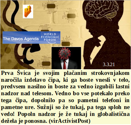 Globalna elita preko svojih letalskih prevoznikov skrbi za naše dobro zaprto počutje. So dekleta v Nigeriji ugodno prodala tam skuhani virus. Bomo cepili učitelje, da prekinemo šolanje. Reklamiranje smrtonosnih cepiv je po domače prostitucija. Zdravje v Belgiji pomeni ogabno debelost. Švica je že naročila čip za skoraj vse Švicarje, druga Švica bo to naredila v nekaj dneh!