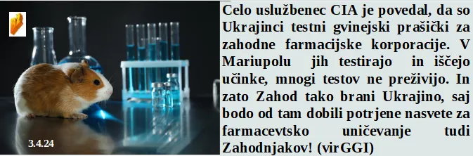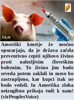 Ker oblastnikom ni uspelo vseh nategniti so zavrgli v smeti na milijone cepiv. Imamo milijone za učenje pobijanja tudi na tujem. 40 let je od hudega potresa v Črni gori. So priznali, da so Ukrajinci testni gvinejski prašički. Ameriški kmetje pa že zelo opozarjajo, da bo meso kmalu kar cepivo.