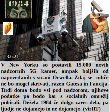 Danes že skoraj vse komuniciranje visi na 5G zločinu in tisti, ki je obseden s tem bo imel prednost, predvsem pri vstopu na Onkologijo. In brezno je odprto, na cepljenje ni več potrebno čakati. So ovce primerljivo človeku pridne in poslušne. V New Yorku pa veliki brat na vsakem vogalu postavlja kamero Velikega brata, da nihče ne uide pred cepivom!