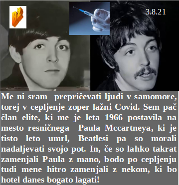 Bosta našim proti narodu nastrojenim hlapcem pomagala tudi WEF in Svetovna banka. Odstotek na kupljene smrtonosne igle bo zdaj še lepši za naše izdajalce. Pokojninsnki skladi se redno praznijo, a tako malo preko pokojnin. Škoda, ker te informacije o Billu še vedno niso uradno potrdili. Tudi McCratney hvali cepiva, saj je kot dvojnik igral igro v Beatlesih.