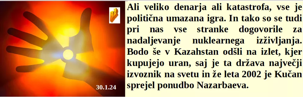 Bo treba resneje delati na dobri korupciji, da ne pademo še kakšno mesto. In Kanada kopiči zdravstveni denar z evtanazijo. Je sodba ICJ dobra, da je ustavila humanitarno pomoč Gazi. Nuklearno izživljanje nima veze s pametjo politikov.
